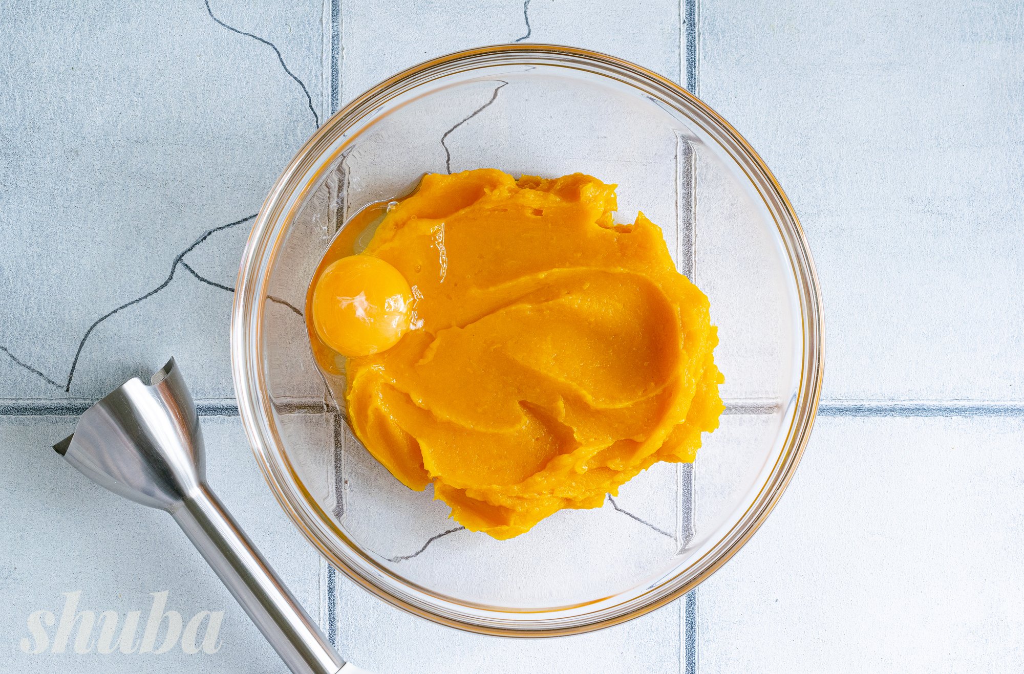 2/8. Подрібни гарбуз у пюре, додай яйце