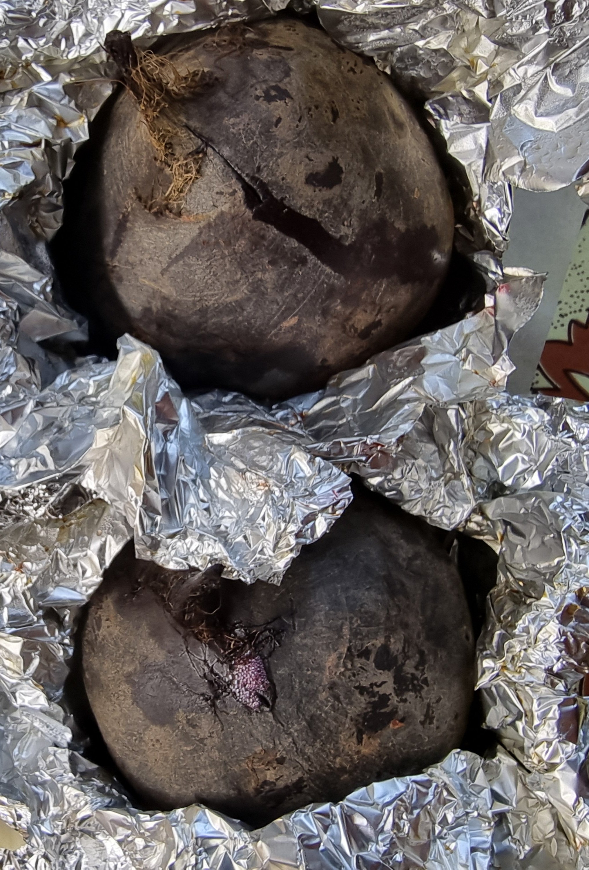 Закуска схожа на популярний салат з буряка й оселедця, тільки без маринованих огірків. Це буде проста українська закуска, яку можна намащувати на хліб. Звісно, буряк можна зварити, але він смачніший після запікання.