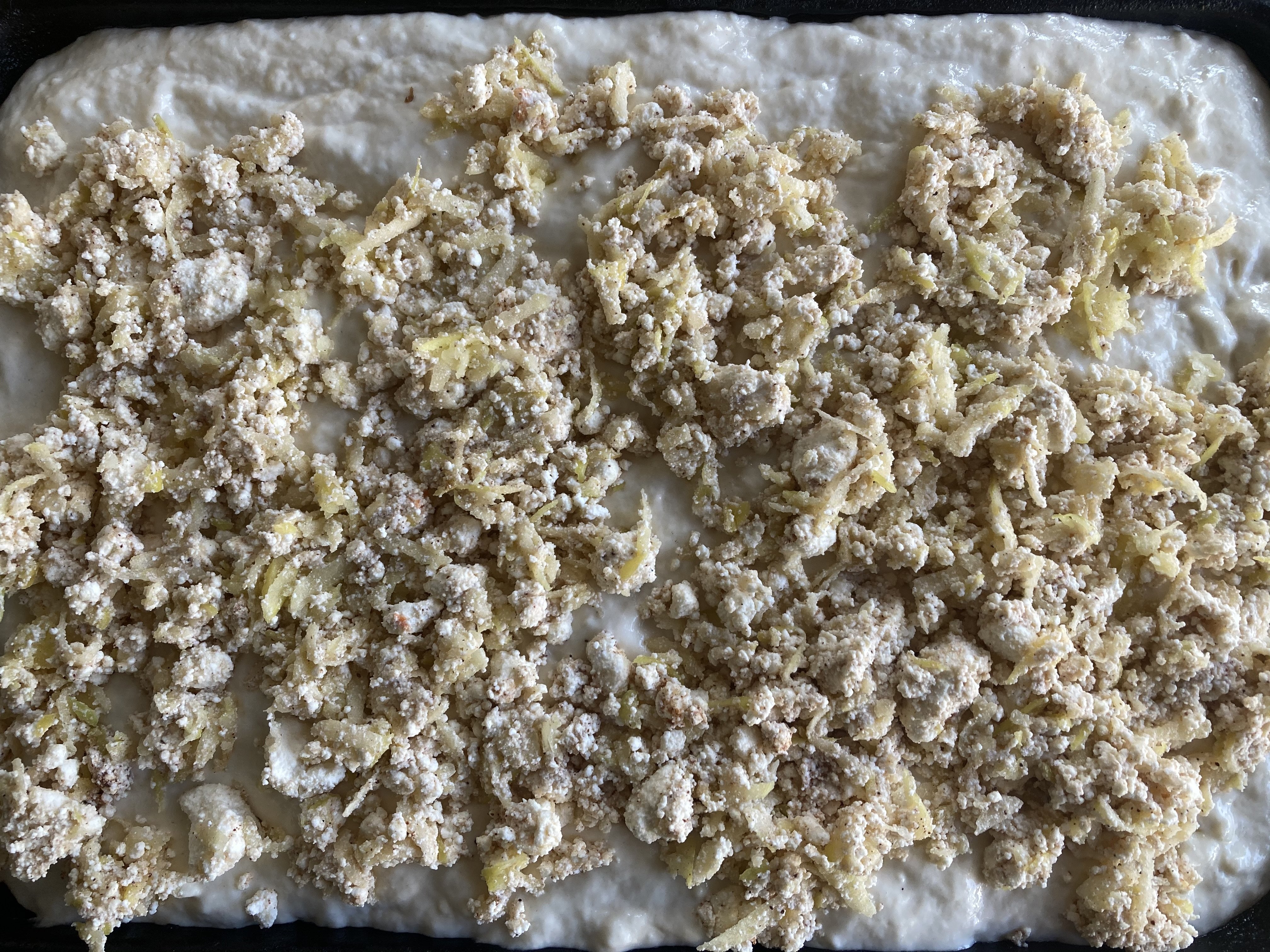- Начинка: щоб грудочки залишалися рельєфними, не перемішуй сир занадто сильно. Щоби пиріг був більш ніжним, можна додати тонкий шар сметани під сир. Також можна зробити тертий пиріг із сиром і варенням.