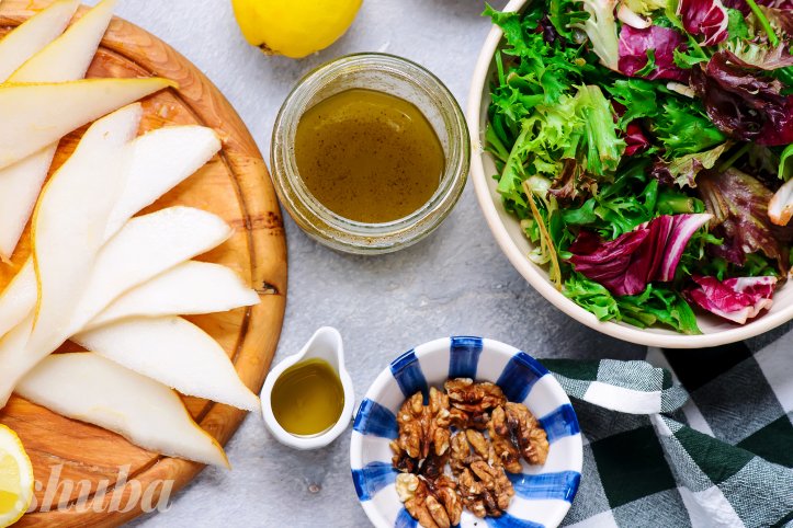 Пізнє літо, осінь чи зима — ідеальні сезони для салату з грушею. Елегантний, але дуже простий рецепт салату з грушею, горіхами та блакитним сиром ідеально підходить для вечері. Це доцільне поєднання ніжної та злегка гіркуватої зелені із солодкою заправкою, соковитими, терпкими фруктами та насиченим, трохи різким смаком сиру з пліснявою.