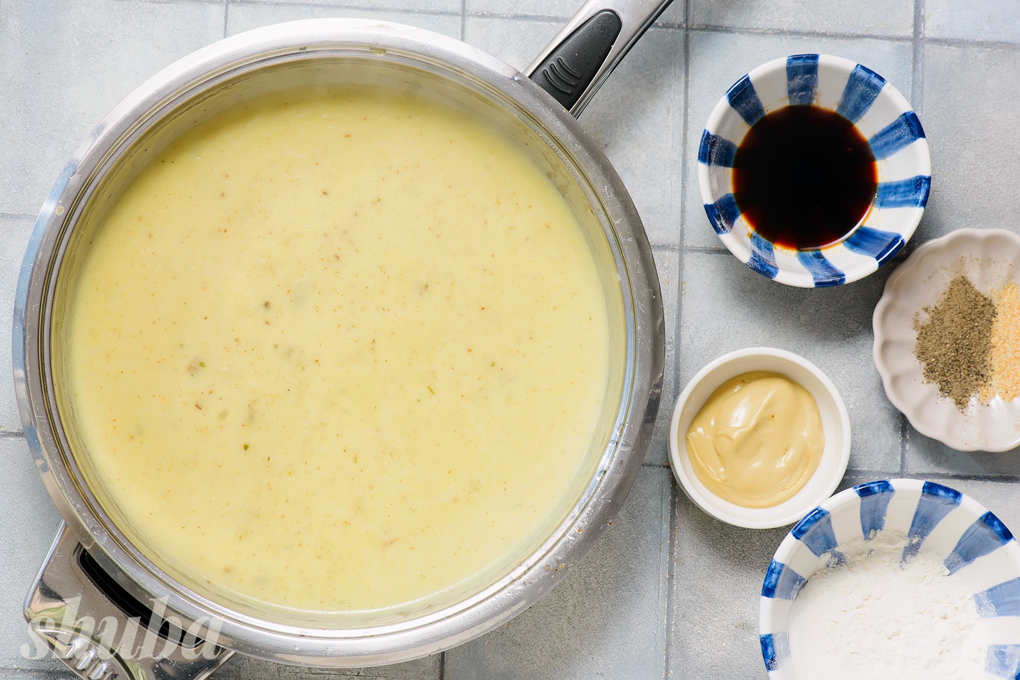Додайте вершки, вустерський соус, гірчицю, сіль і перець. Варіть 4-5 хв, поки соус не почне густіти.