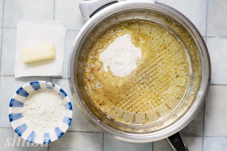 Повільно влийте яловичий бульйон, вмішайте в нього всі шматочки, що прилипли до сковороди (це зветься деглазування).