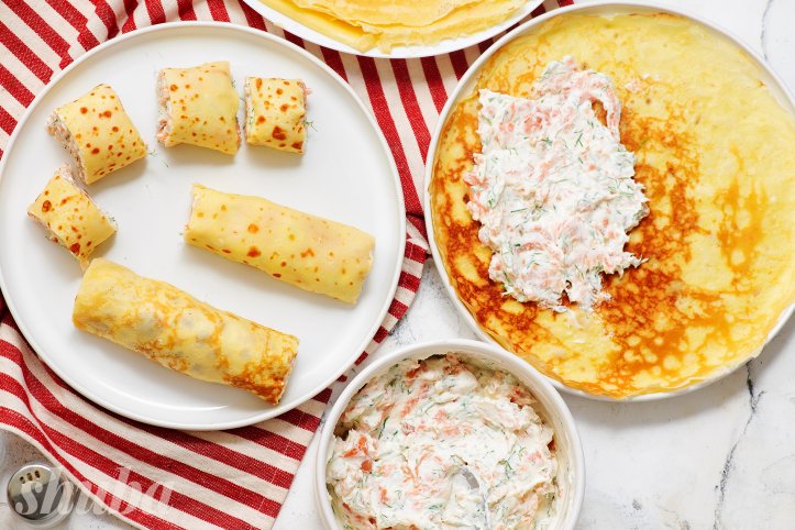Млинці із сьомгою — універсальна закуска з червоною рибою