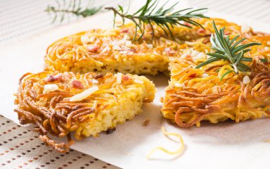 Например, вы можете приготовить пирог из спагетти с тремя сырами. Это вегетарианская и еще более тягучая версия блюда!