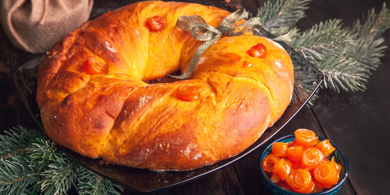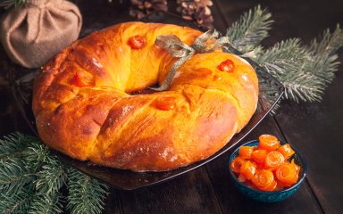 Если вы не устали от зимних десертов и хотите продлить праздники, приготовьте этот венок с нугой. Это роскошный десерт, заменяющий на столе торт или пирог.