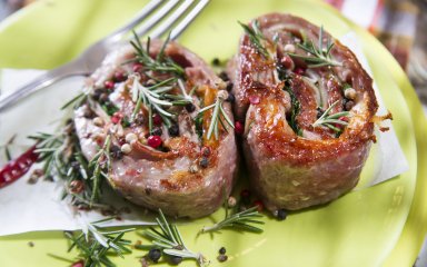 Это сочное основное блюдо состоит из нескольких элементов: ломтиков нежной мясной вырезки, фаршированных аппетитной начинкой из риса и грибов. Под сопровождением запеченного картофеля по-одесски и аппетитного соуса это блюдо покорит всех!