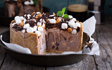 Rocky Road по-новому: шоколадный торт-мороженое с орехами и маршмеллоу