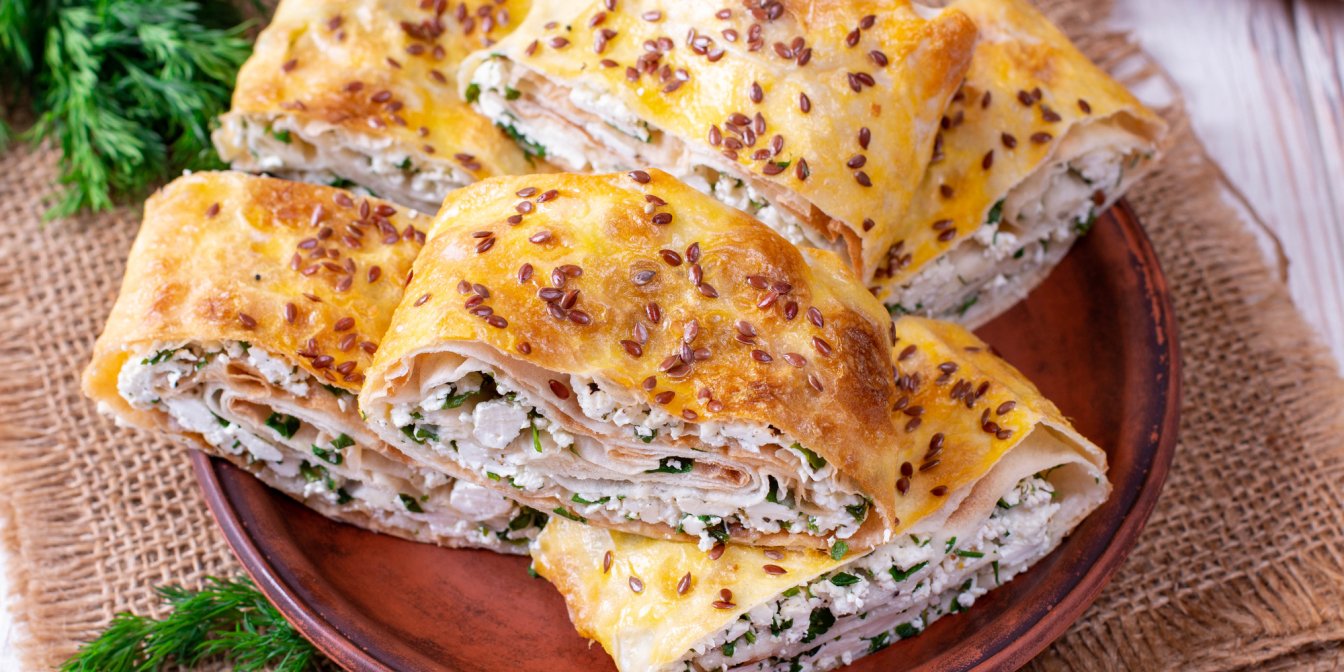 Выпекайте рулет в разогретой до 180°C духовке 20 минут. Подавайте горячим!