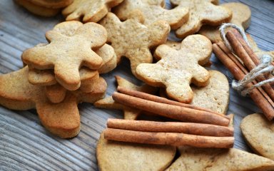 Раскатайте тесто в тонкий пласт. С помощью различных формочек вырежьте из теста печенье.