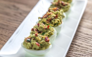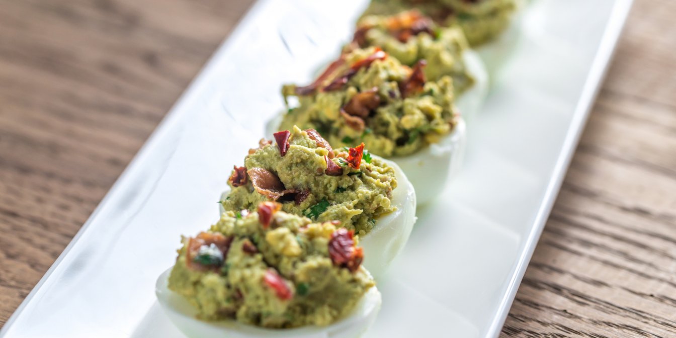 Яйца, фаршированные гуакамоле с беконом — закуска на скорую руку