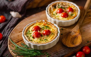 Совет от SHUBA: сырный киш можно разнообразить добавлением груш для сладкой ноты, а томаты и кабачки заменить на брокколи и горох.