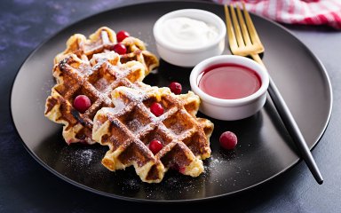 Начните свой день с настоящих бельгийских вафель с вишневым сиропом!