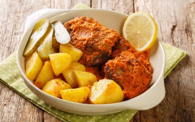 Картофель, приготовленный в микроволновке, можно подать со свиными отбивными, рублеными овощно-куриными котлетами или рыбными палочками в панировке.