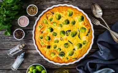 Киш с брюссельской капустой, адыгейским сыром и беконом — это настоящая вкуснятина на завтрак! Приготовьте его по нашему простому рецепту.
