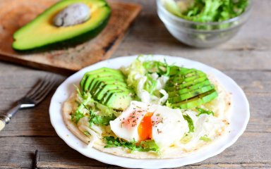 Авокадо, которое достаточно легко выбрать, вместе с вареными яйцами и лавашем — это сытное блюдо, которое можно подавать на завтрак, обед или ужин.