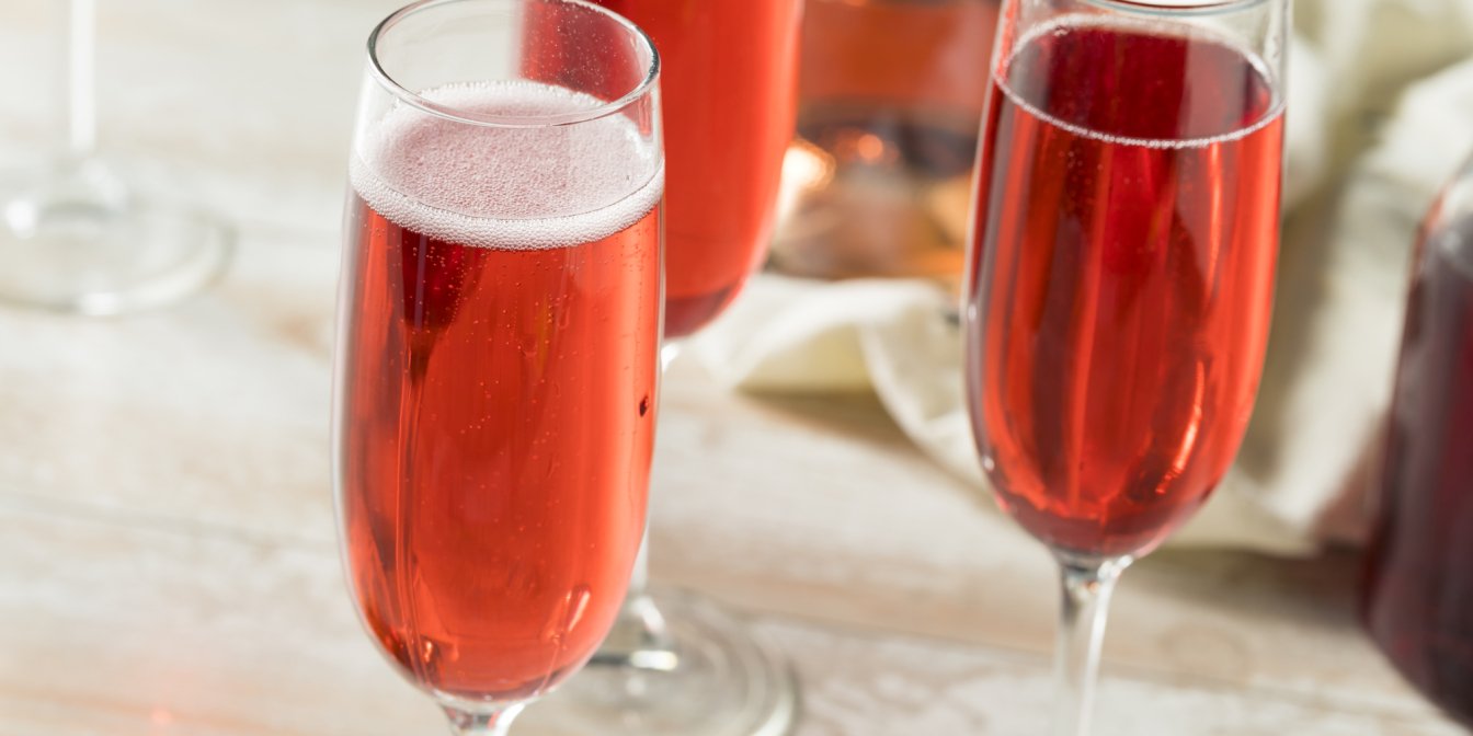 Перелейте в бокал для шампанского и добавьте охлажденное греческое розовое игристое вино. Наслаждайтесь!