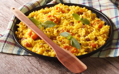 Плов даже в такой облегченной версии, как у нас, способен перенести нас на Восток, где это блюдо является гордостью и важным кулинарным достижением. Чернослив, курага и изюм идеально сочетаются с рисом и образуют легкий постный десерт с интересной текстурой.