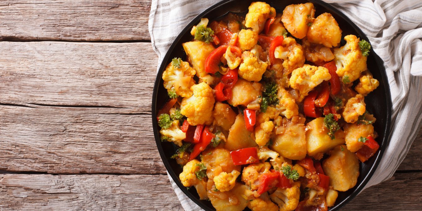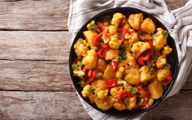 Слегка подрумяненный картофель, лук, чеснок, перец, цукини вместе с вареной цветной капустой запекаются в духовке до хрустящей корочки. Вот и весь рецепт!