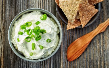 Посыпьте йогуртовый соус мелко нарезанным зеленым луком и подавайте на стол.