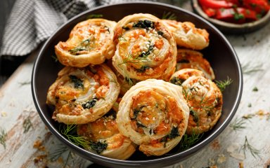 Если вы ищете легкую вегетарианскую закуску, которая обязательно понравится всем, эти «улитки» из слоеного теста со шпинатом — то, что вам нужно! Откусите кусочек и почувствуете маслянистую хрустящую корочку снаружи, а внутри — жевательную, соленую и чесночную начинку.
