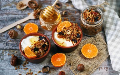 Этот завтрак имеет все основания стать звездой недельного меню, так что предлагаем начать неделю именно с него. Гречневая каша, апельсин, сухофрукты и орехи — что еще нужно, чтобы насладившись ярким свежим вкусом, начать рабочую неделю? Советуем сварить гречку с вечера, а уже с утра немного уварить ее в цитрусово-медовом соусе.