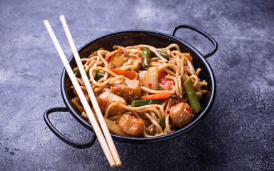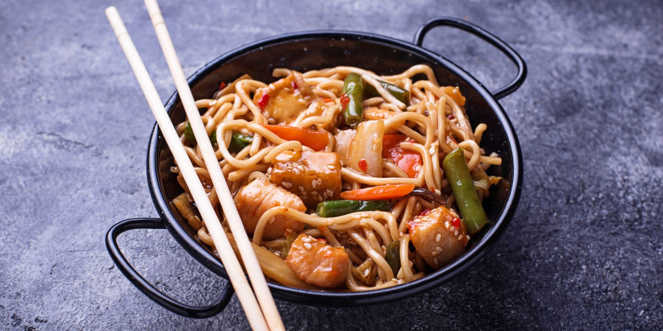 Удон с курицей и овощами