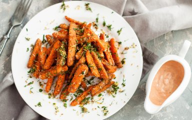 Советуем подавать запеченную морковь с нежным йогуртовым соусом с мятой. Он имеет отличные свежие нотки!
