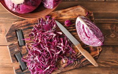 Этот салат из красной капусты — красочная комбинация ингредиентов. Орехи и вкусная заправка придают салату свежий вкус.