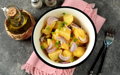 Горячее, ароматное, питательное блюдо из отварного картофеля, лука и грецких орехов. Готовить картофель всегда хорошо, но соедините его с орехами и получите настоящее удовольствие.