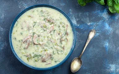 Этот суп готовят в Великую субботу. Суп ставится на слабый огонь для приготовления перед уходом в церковь и съедается по возвращении домой. Предлагаем приготовить еще и пасхальное мясное блюдо.