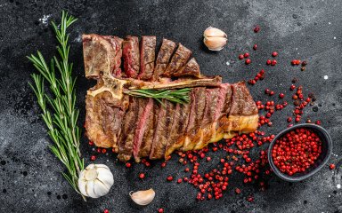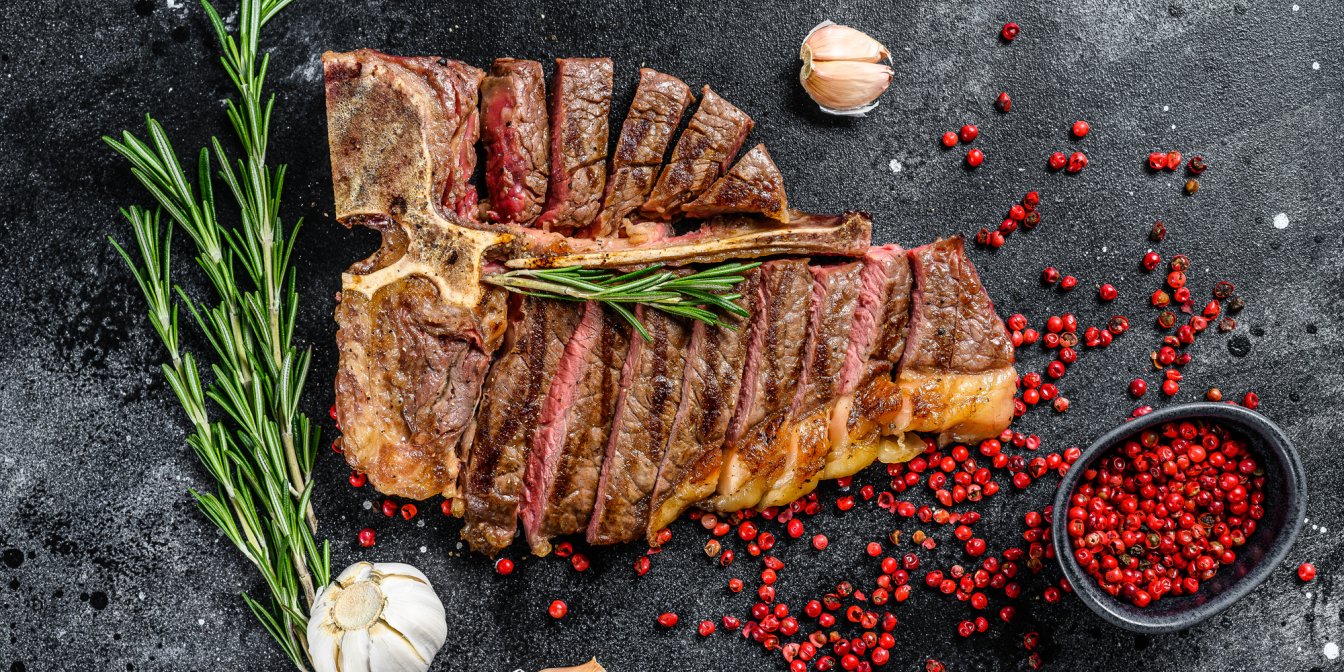 Стейк с костью T-образной формы, сочетает в себе два типа говядины — стриплойн (strip-loin) и нежный тендерлойн (tenderloin). В качестве альтернативы предлагаем приготовить стейк, который обожал Сильвестр Сталлоне.
