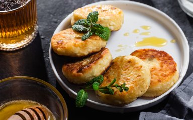 Готовые сырники можно подавать с медом или вареньем. А еще на завтрак можно приготовить творожную запеканку с хурмой.