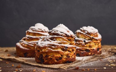 Пасхальные краффины — дрожжевые булочки с изюмом, сливочным маслом, цукатами и шоколадом. Они получаются мягкими, как маффины, и воздушными, как круассаны.