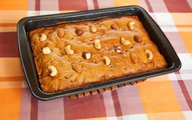 Выньте пирог из духовки и оставьте остыть. Сразу полейте горячий пирог медовой глазурью. Дайте ему застыть и остыть, прежде чем нарезать и подавать. Затем нарежьте квадратиками и наслаждайтесь.