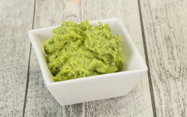 Используйте мангольд, тахини, оливковое масло, чеснок и лимон. Намазка получится нежная, в меру острая, кисло-пикантная. А если у вас осталось немного мангольда — приготовьте из него еще и гарнир.