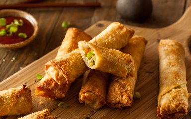Яичные рулетики — популярное блюдо китайско-американской кухни. Быстрый в приготовлении, этот рецепт требует меньше растительного масла, чем обычные варианты, приготовленные во фритюре.