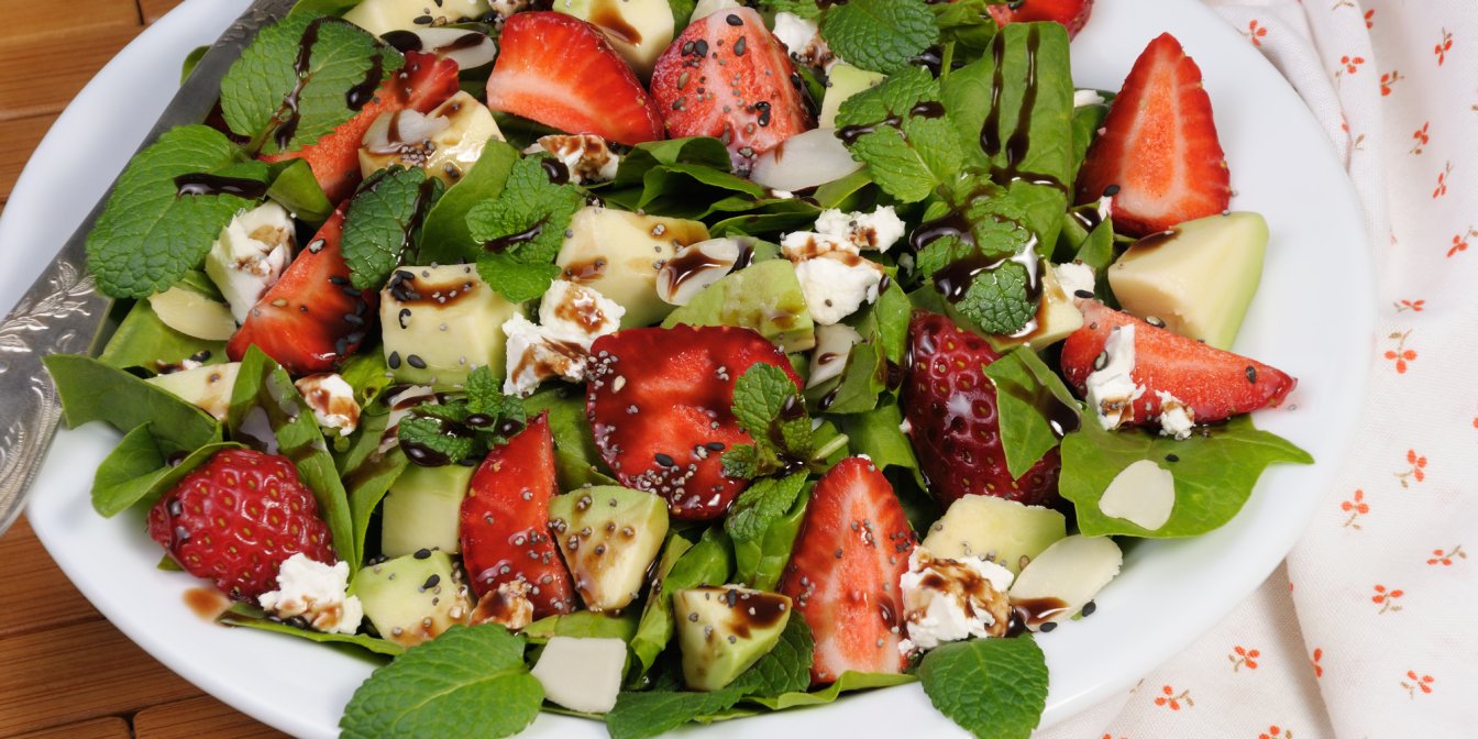 SHUBA советует выбрать для салата спелую клубнику, а также овечью брынзу. Однако можно добавить и сыр из коровьего молока. С вниманием отнеситесь к выбору авокадо — плод не должен быть твердым. Однако если вам пришлось купить незрелый плод, мы рассказывали, как быстро созреть авокадо.