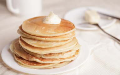 Они замешиваются на молоке и получаются очень легкими и воздушными. Подавать их можно со сладкими топпингами или с обжаренным беконом.