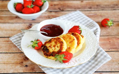 Рыхлые сырники из домашнего творога с клубничным соусом идеально подходят для сладкого перекуса. Их можно быстро приготовить вместе с SHUBA.