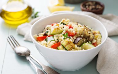 Если вы любите салат с овощами гриль, то такое блюдо точно для вас. Добавьте в любимое блюдо кускус, и получите новый, но очень вкусный обед, которым не стыдно накормить гостей.