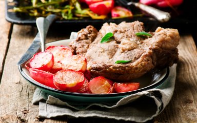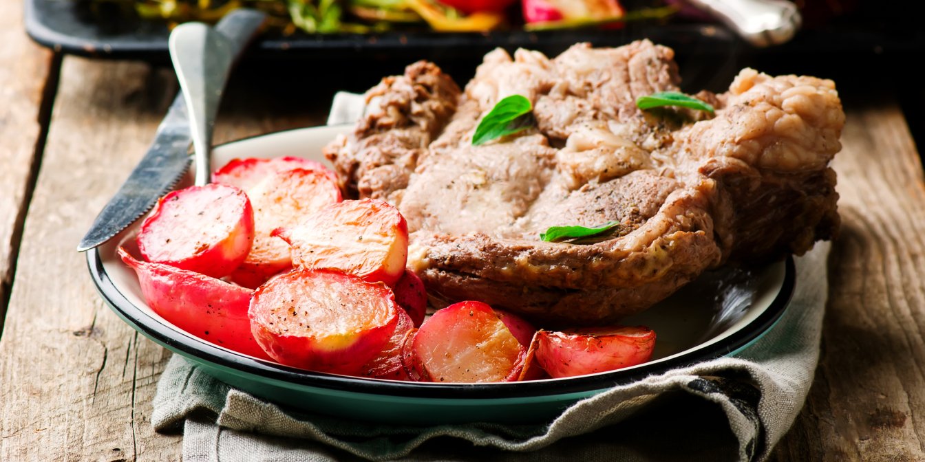 Приготовьте насыщенный соус из черной фасоли, затем полейте обжаренную на сковороде свинину и редис для особого жаркого. М-м-м, объедение!