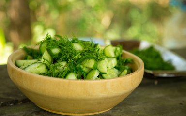 Этот салат из огурцов вдохновлен соусом суномоно. Он хрустит, освежает и словно плавает в нежных нотах умами.