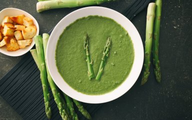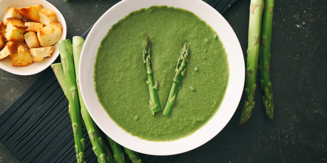Подавайте спаржевый крем-суп со вкусным домашним хлебом или чесночными греночками.