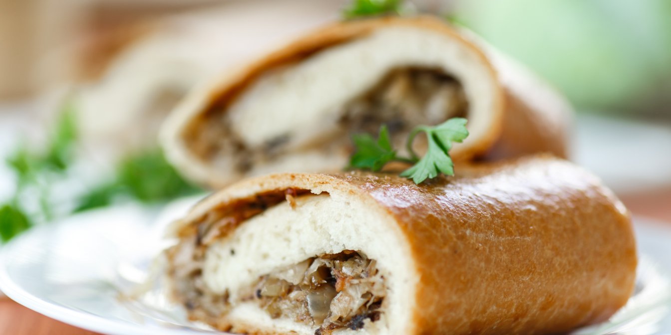 На самом деле, эта выпечка только выглядит оригинально, но готовится привычным способом: пока начинка тушится в сковороде, заводится тесто, а затем они соединяются для роскошного пирога-рулета. Приготовьте один раз, и вы легко усвоите принцип.
