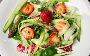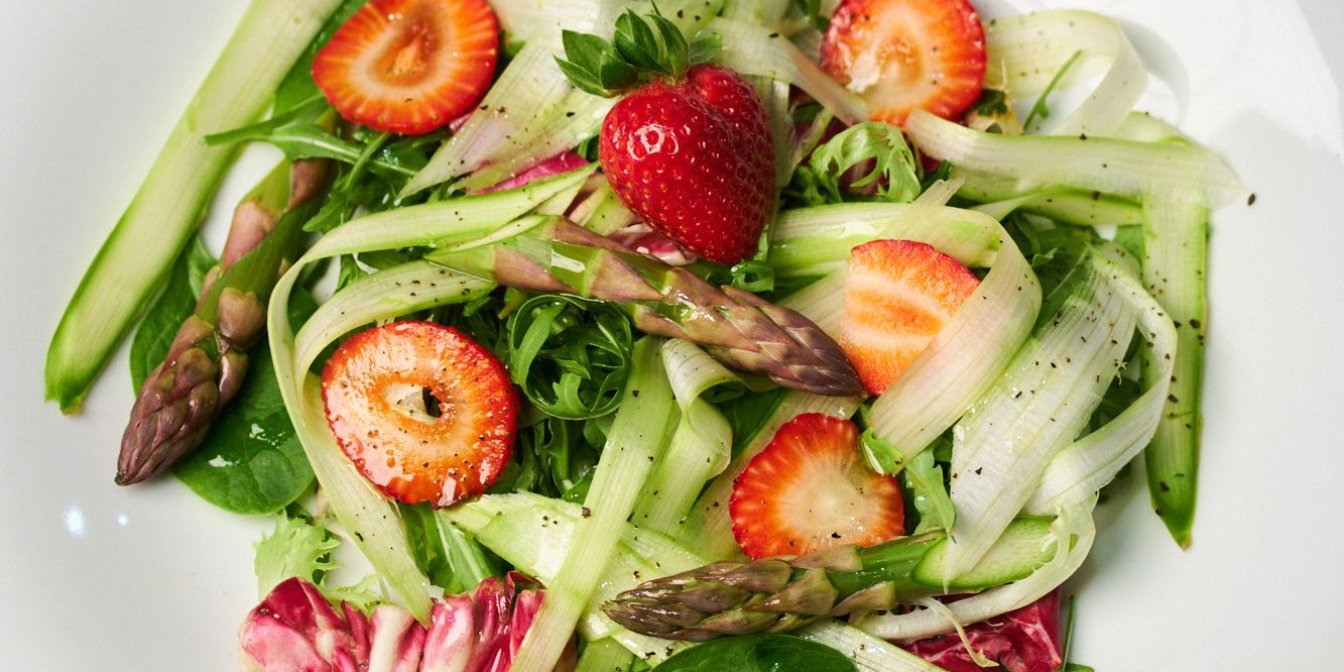 Живописный салат со свежей спаржей и клубникой
