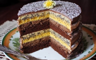 У вас намечается праздник, и нужно выбрать рецепт торта? Присмотритесь к этому нарядному большому пляцку. В каждом его слое интересно сочетаются несколько вкусов и текстур.