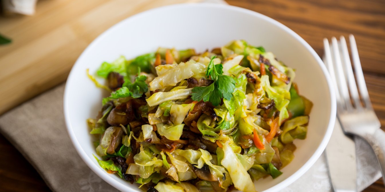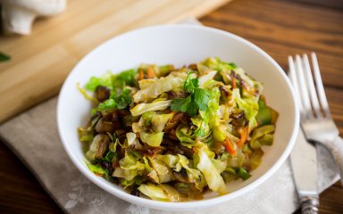 Молодая капуста, жаренная с грибами — постное блюдо