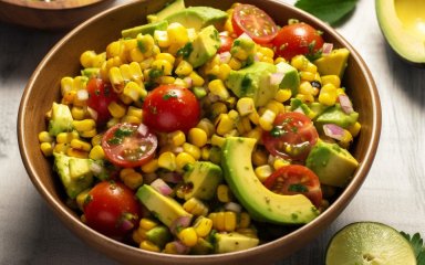 Свежая сладкая кукуруза, сливочный авокадо и сочные помидоры сияют в этом ароматном летнем салате. А готовится он очень просто!