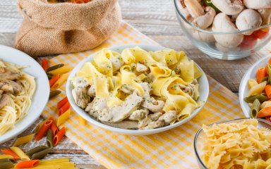 Мы также рекомендуем вам приготовить макароны с курятиной и грибами под соусом бешамель.