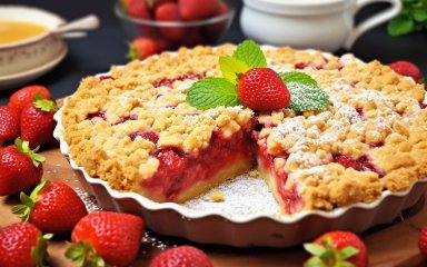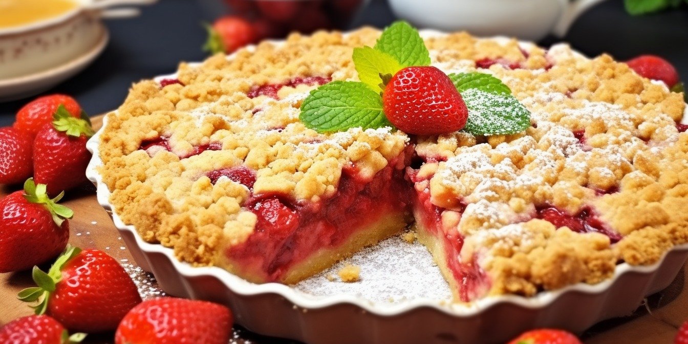 Простой насыпной пирог с клубникой
